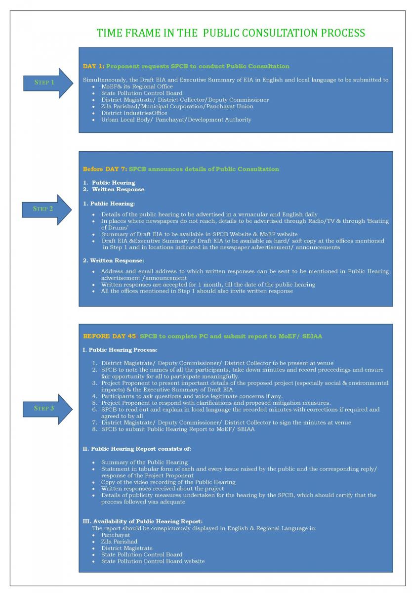 • The fresh date, time and venue for public consultation should then be decided by the Member-Secretary of SPCB only in consultation with the District Magistrate/District Collector/Deputy Commissioner and notified afresh.